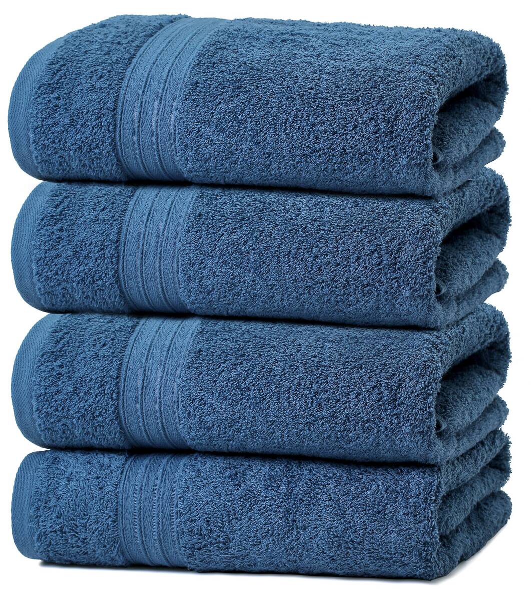 - ホテルスタイル バスタオル セット タオル 4枚 コットン 人気 綿 ふわふわ の肌触り 吸水 100% (バスタオル, 青)