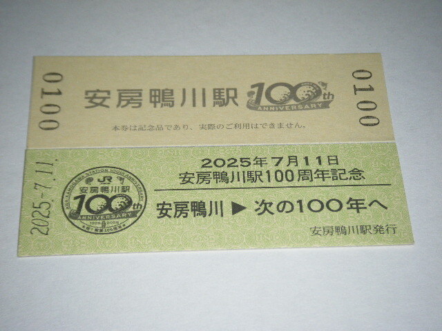 - 【JR東日本・千葉支社】安房鴨川駅100周年記念 記念D形硬券 1枚