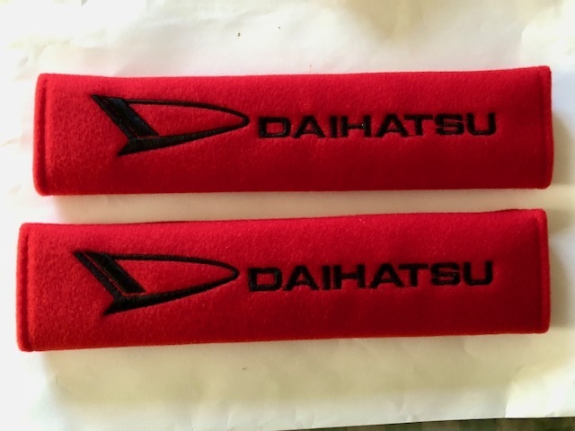 > 送料無料!目立つレッド! ダイハツロゴ シートベルトパッド ロッキー ムーヴカスタム コペン タント キャスト トール