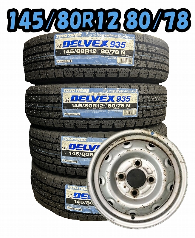 - 2025年製 145/80R12 80/78N TOYO DELVEX 935 新品 スタッドレスタイヤ/中古鉄ホイールセット【組み付けバランス無料】