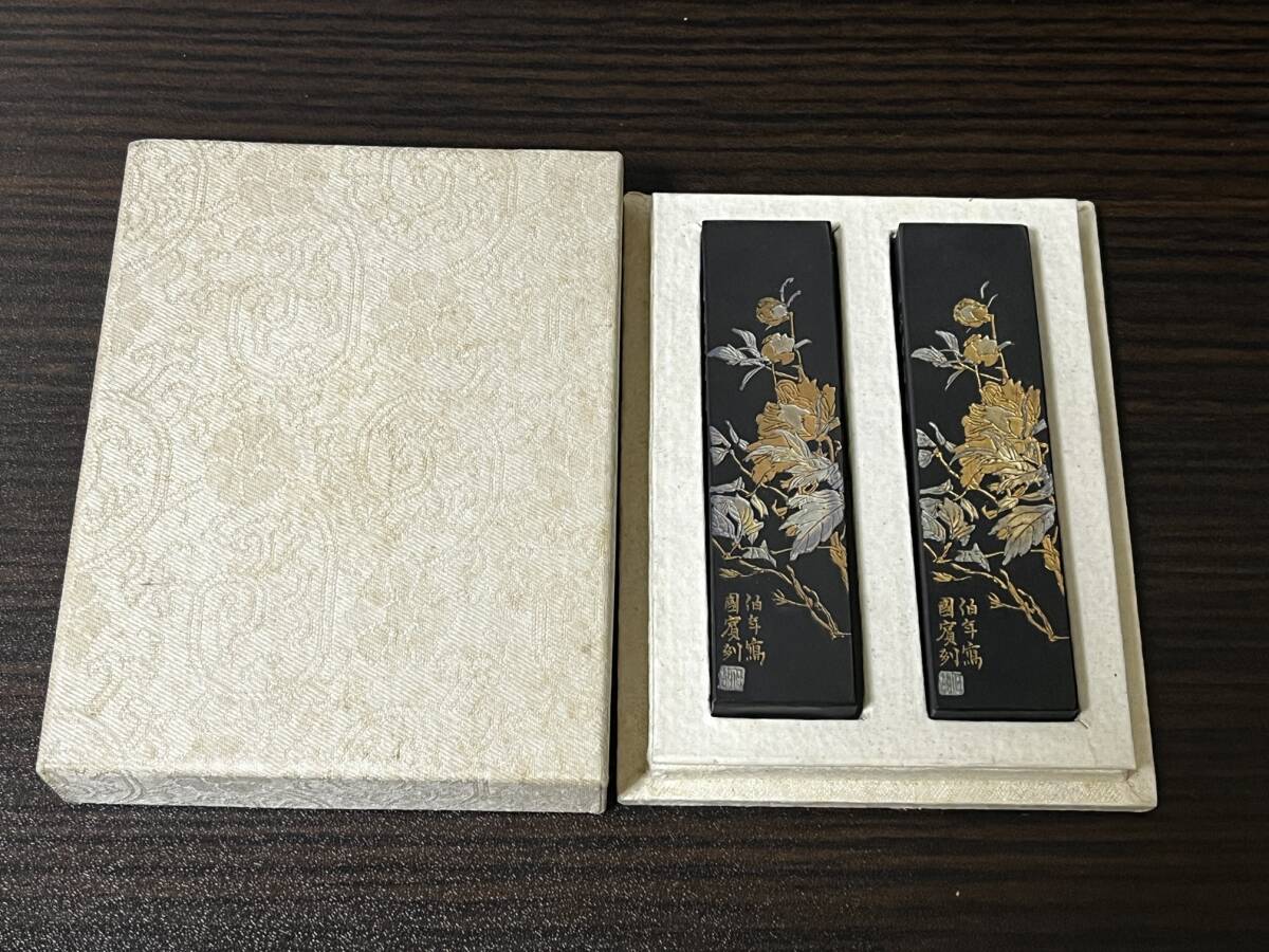 - (未使用)貢煙 2本 計68g 徽歙曹素功堯千製 中国 墨 書道 古墨 唐墨 文房四宝