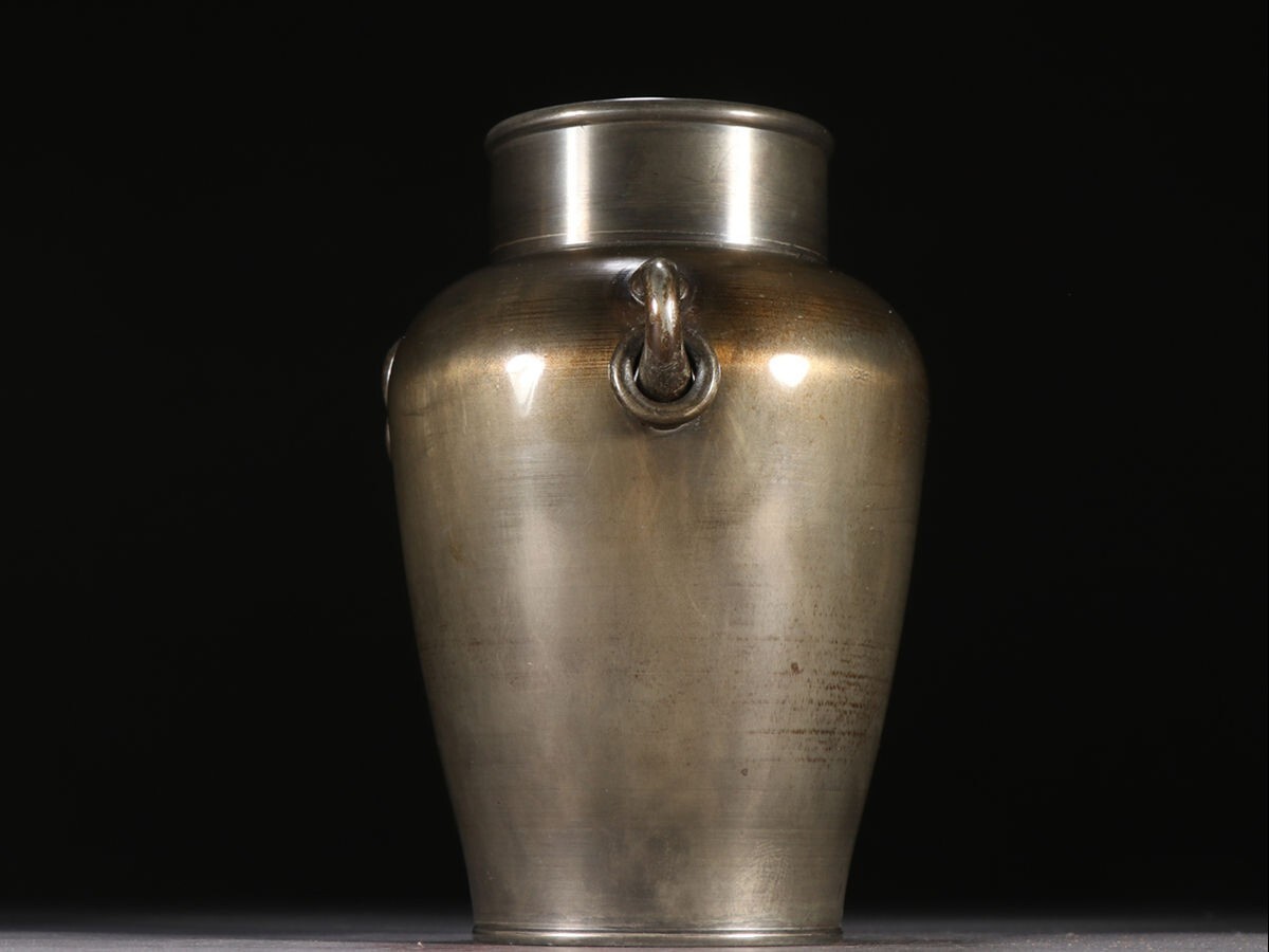 - 「錫胎彫 三耳銜環 茶葉罐 英祥堂造銘 時代物」極細工 置物擺件 茶道具 古賞物 古美術 旧蔵出