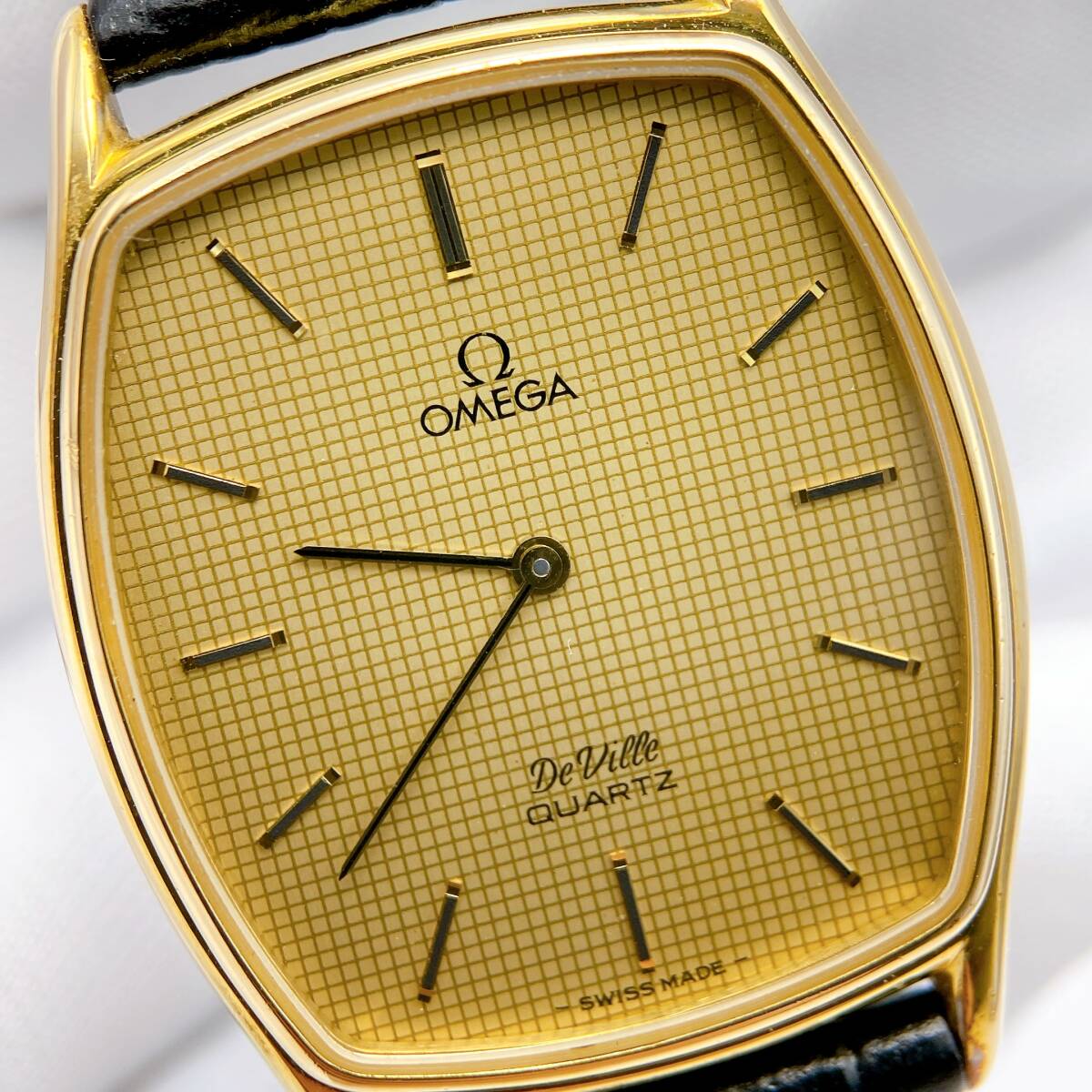 - 【稼働】美品 オメガ OMEGA デビル DEVILLE メンズ 腕時計 クオーツ QZ ゴールド 格子柄 トノー レクタン 1365 ヴィンテージ 動作 y8