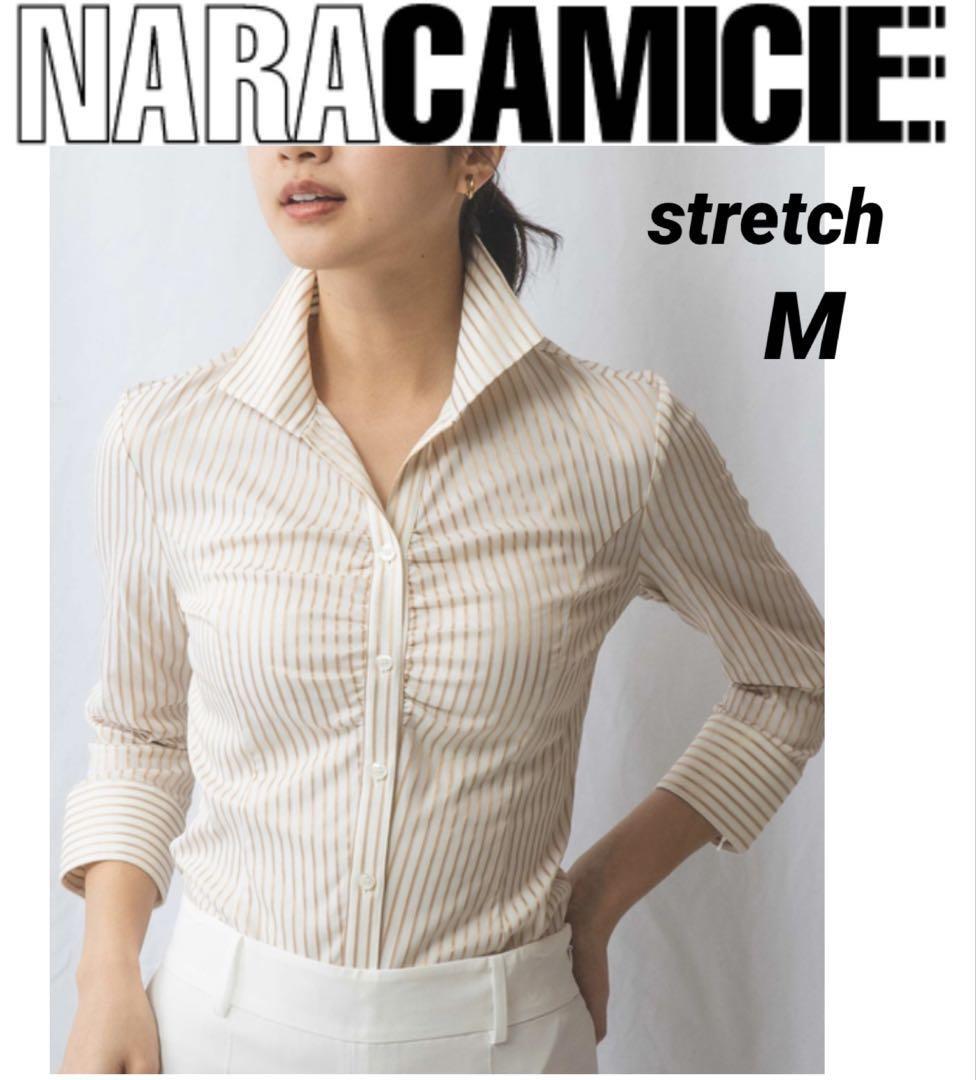 - NARACAMICIE ナラカミーチェ サテン ストライプ ギャザー ストレッチ 長袖シャツ M