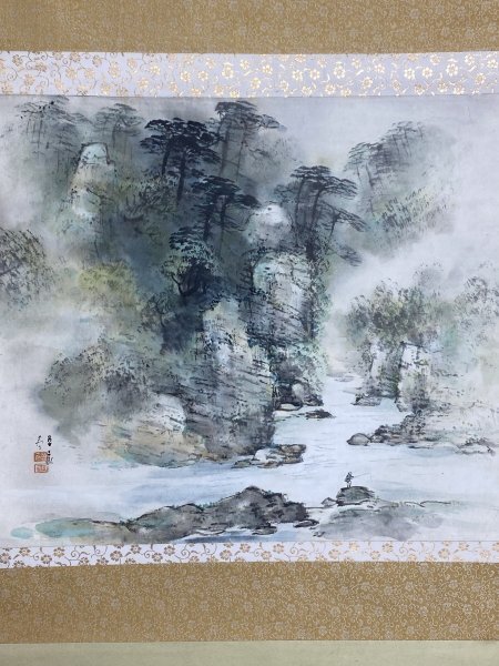 > 《魚亀》【模写】服部翠畝「渓谷釣図」紙本 紙箱 渡辺秋谿師事 山水 日本画 茶掛 茶道具 古美術 掛軸 掛け軸 中国 人が書いたもの