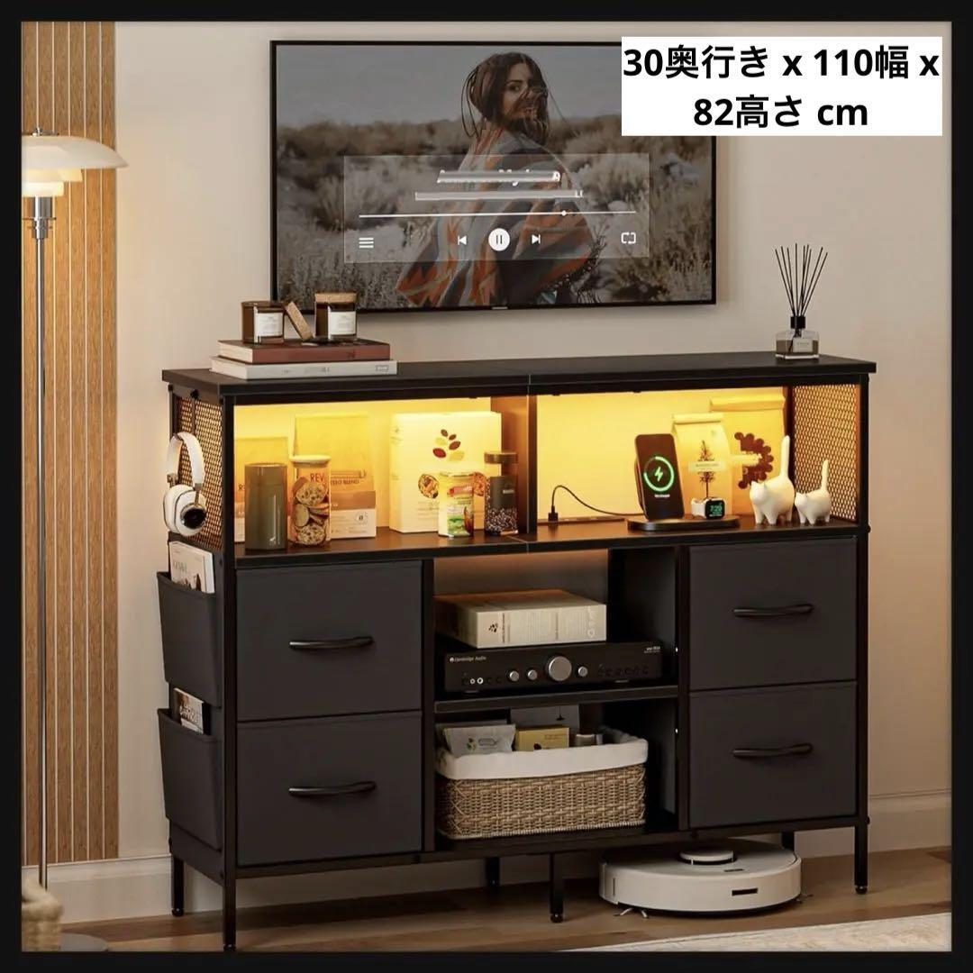 - 大特価!!チェスト収納 タンス 棚付き 箪笥リビング収納チェスト LEDライトテレビボード