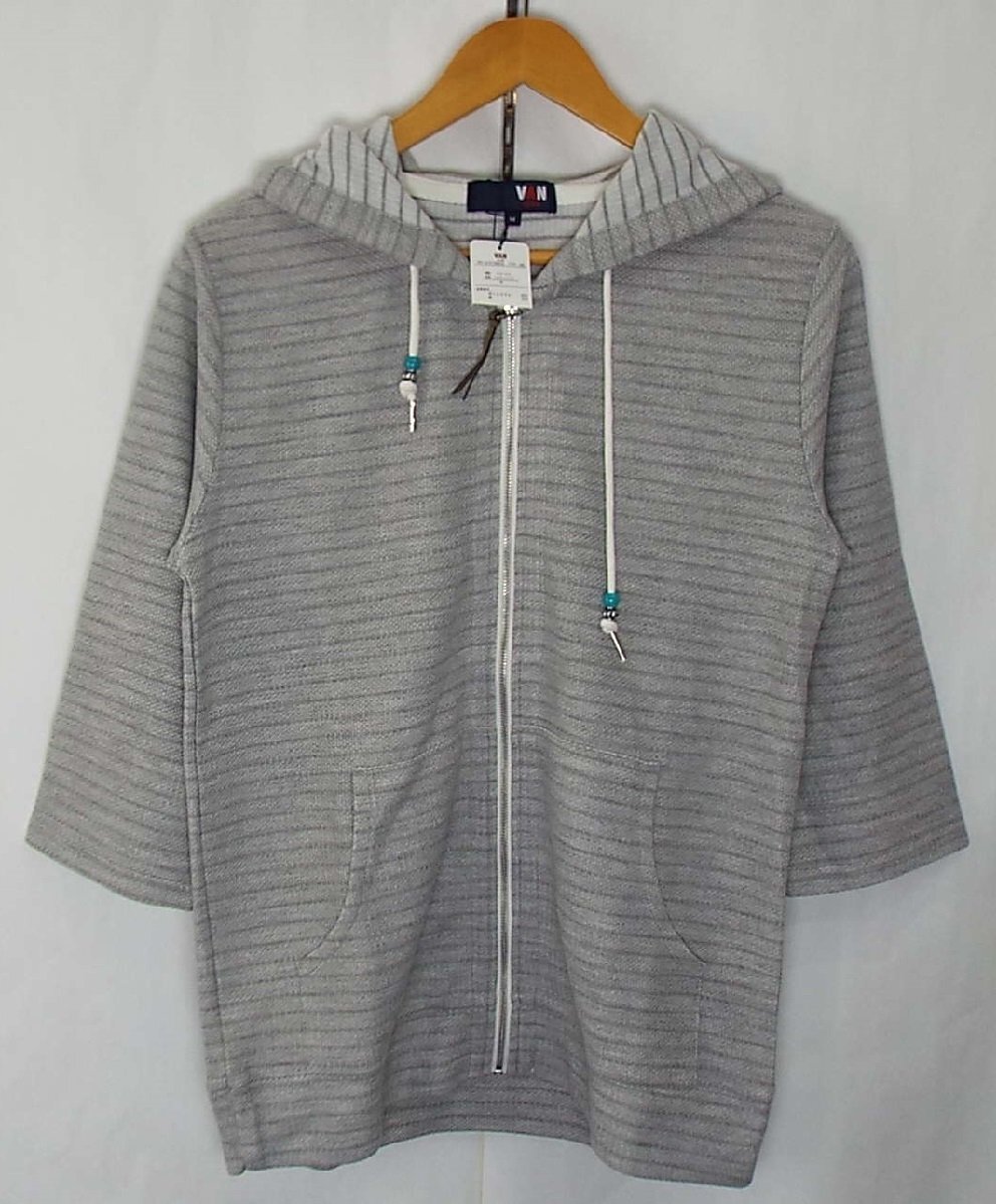 > T3501〇VAN CLUB/バンクラブ/ヴァンクラブ 半袖 フードパーカー ジップアップ ボーダー V373803/グレー系/M/未使用/タグ付