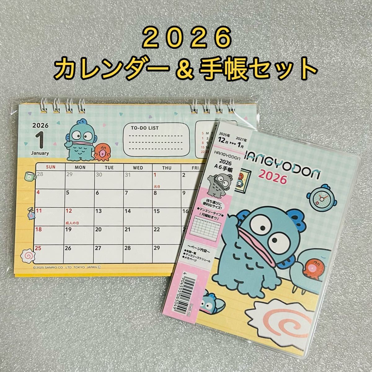 > 【2冊セット】2026年 ハンギョドン 卓上カレンダー&手帳 スケジュール帳 サンリオ 来年用 透明カバー付き マンスリー