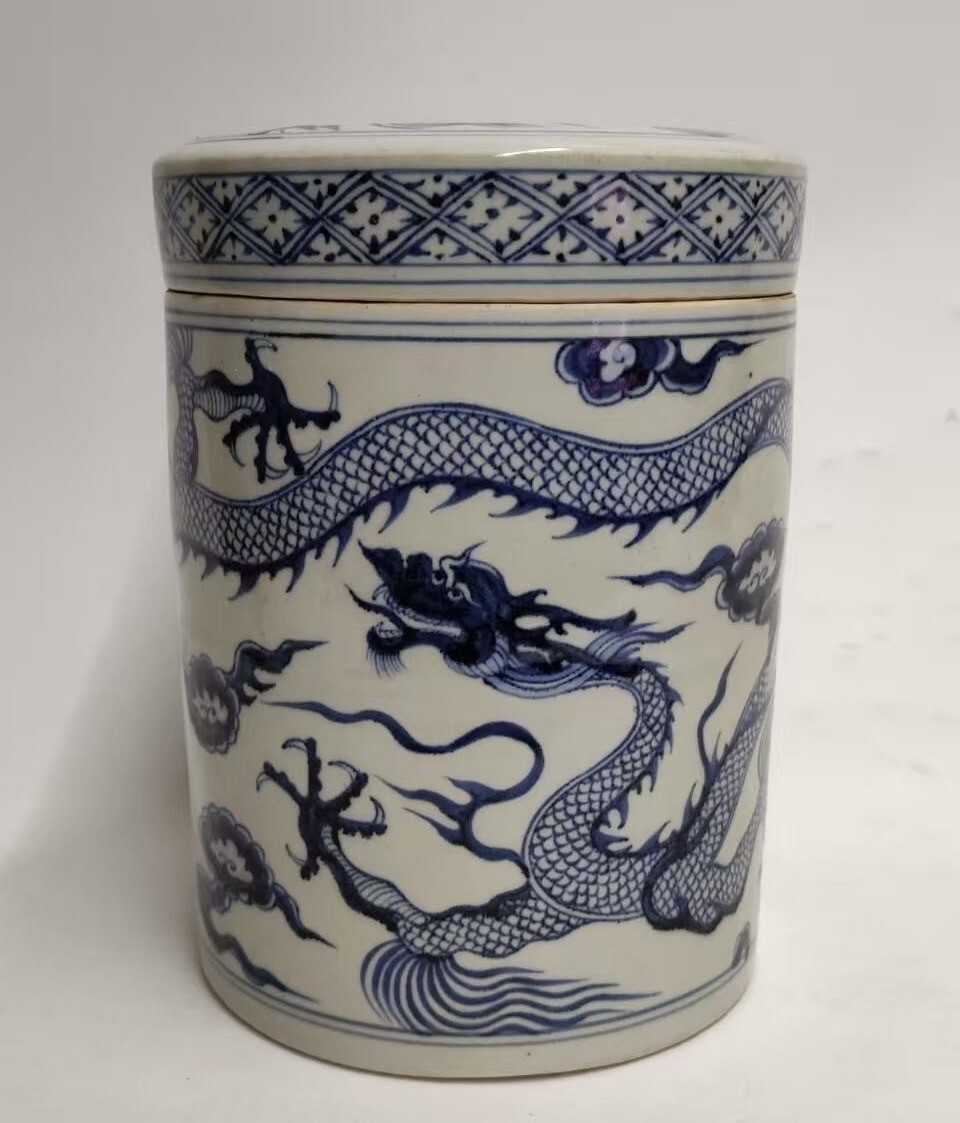 - 【積古】中国古美術 明時代 青花 龍紋 茶入 蓋付 古玩 骨董 美術品 骨董品 時代物 古美術 唐物 当時物 置物 mi1