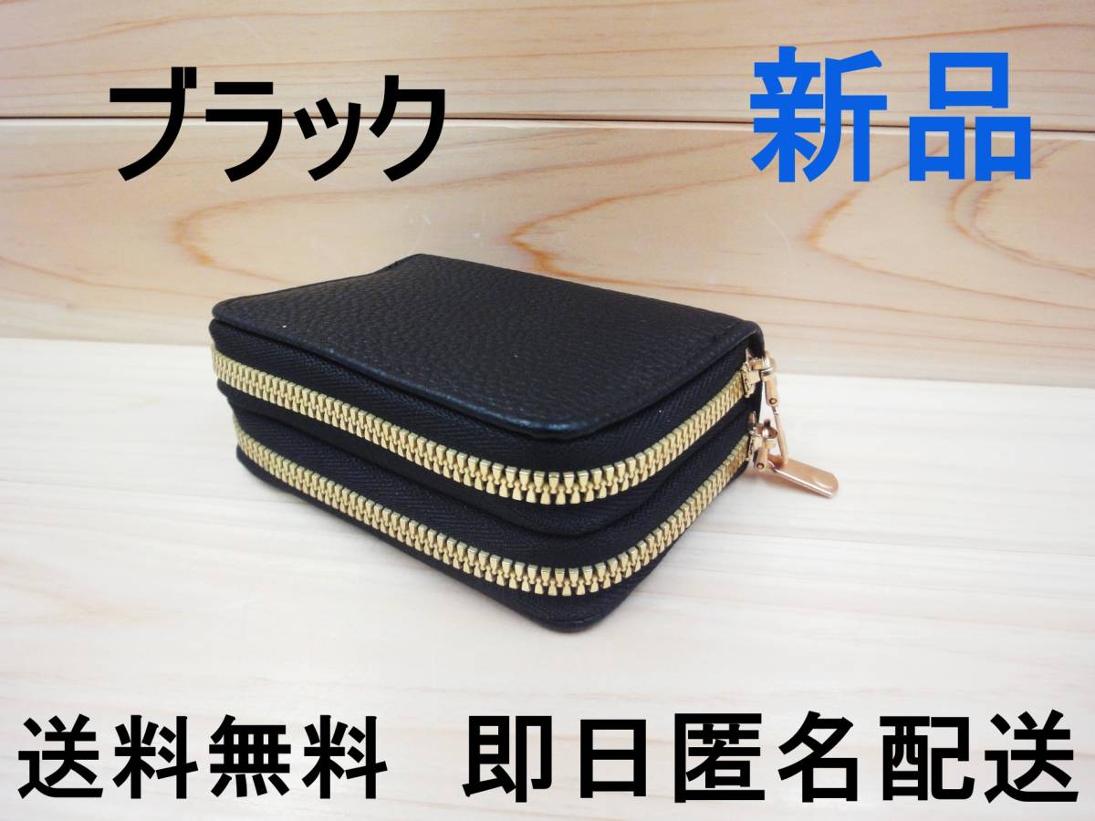 - 新品未使用 大容量 ダブルファスナー マルチカードホルダー ブラック カードバッグ コイン財布 男女兼用 財布 送料無料 01