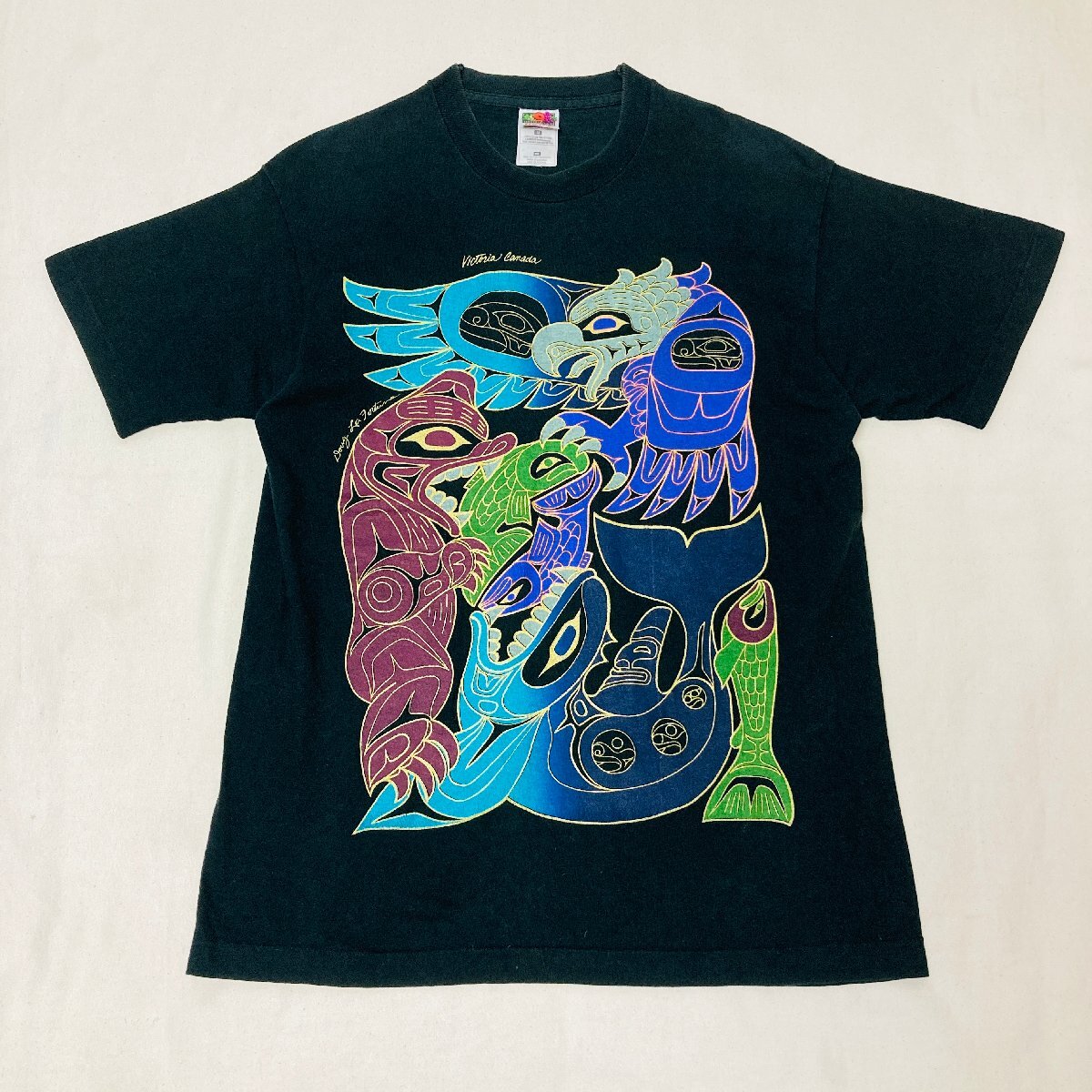 > FRUIT OF THE LOOM カナダ製 Victoria Canada プリント Tシャツ ブラック/黒 M