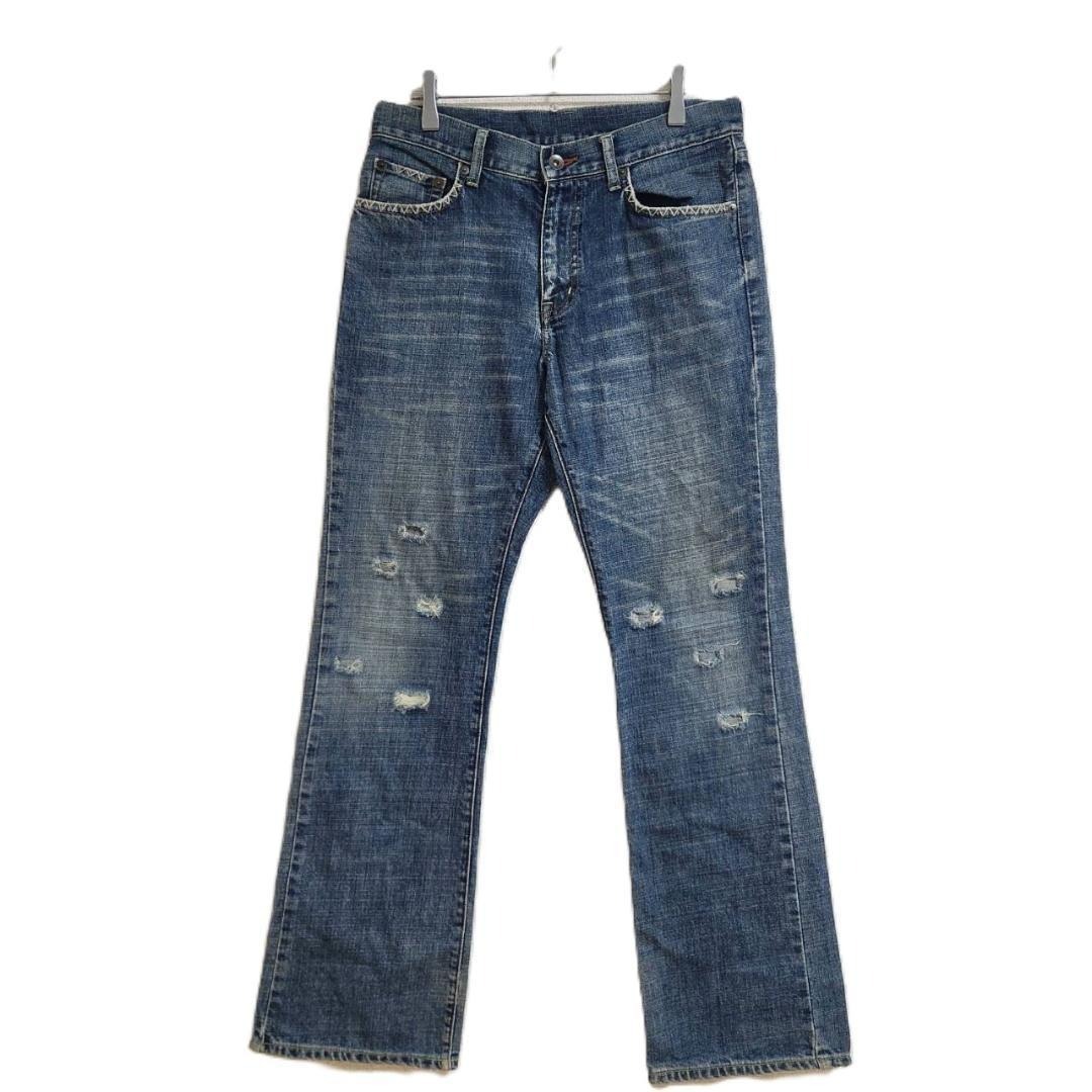 - 希少 00s オールドユニクロ デニムパンツ 30 M ブルー ダメージ加工