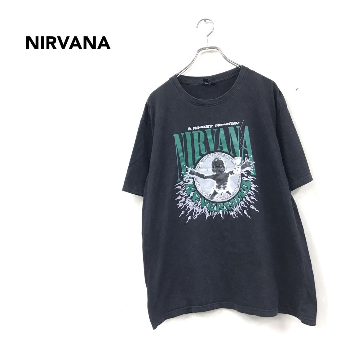 > 2K2183-D◆ NIRVANA ニルヴァーナ 半袖Tシャツ カットソー プリント バンT ◆sizeXL ブラック コットン 古着