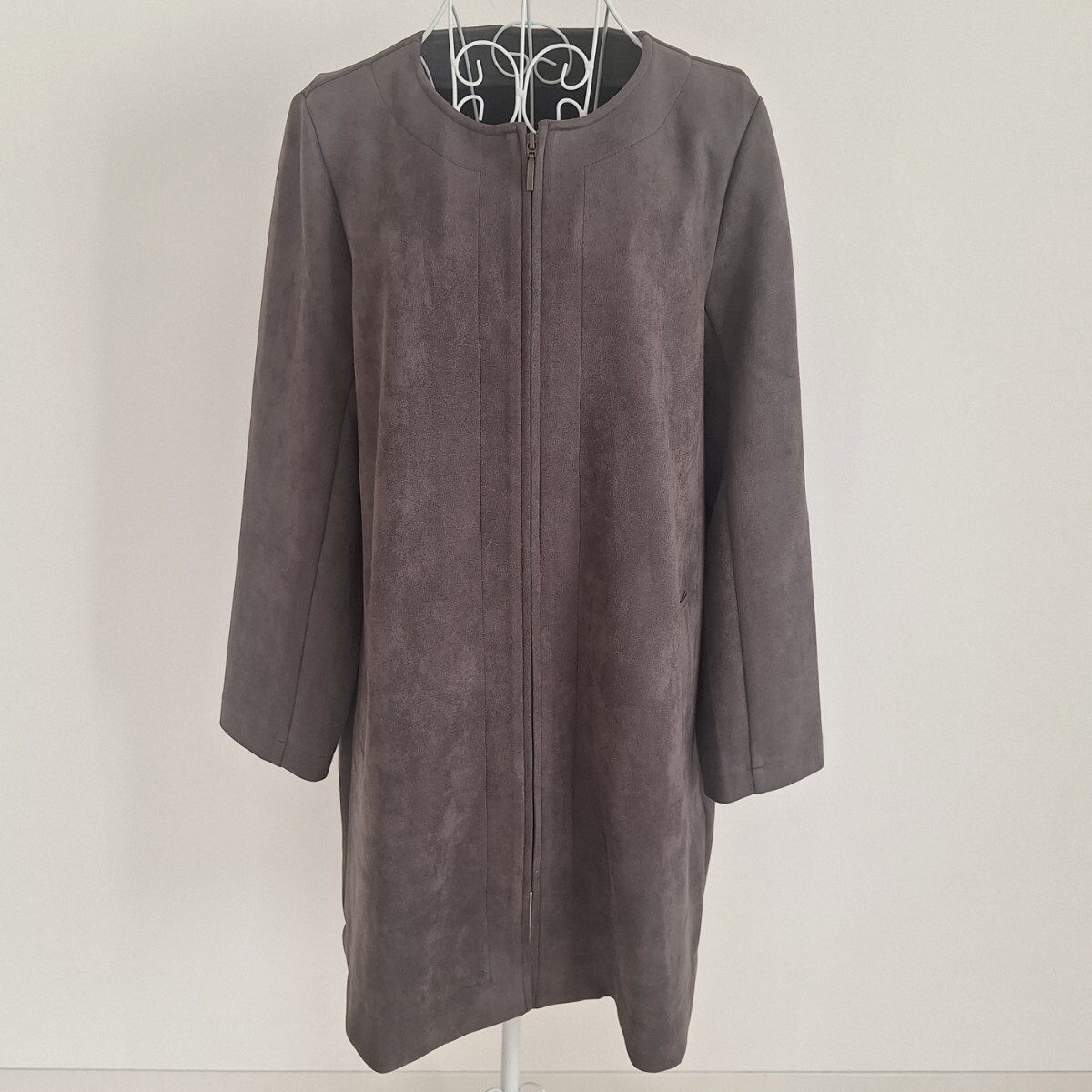 - ◆未使用◆noa-ge◆ノーカラーコート◆フェイクスエード◆チャコールブラウン◆L◆