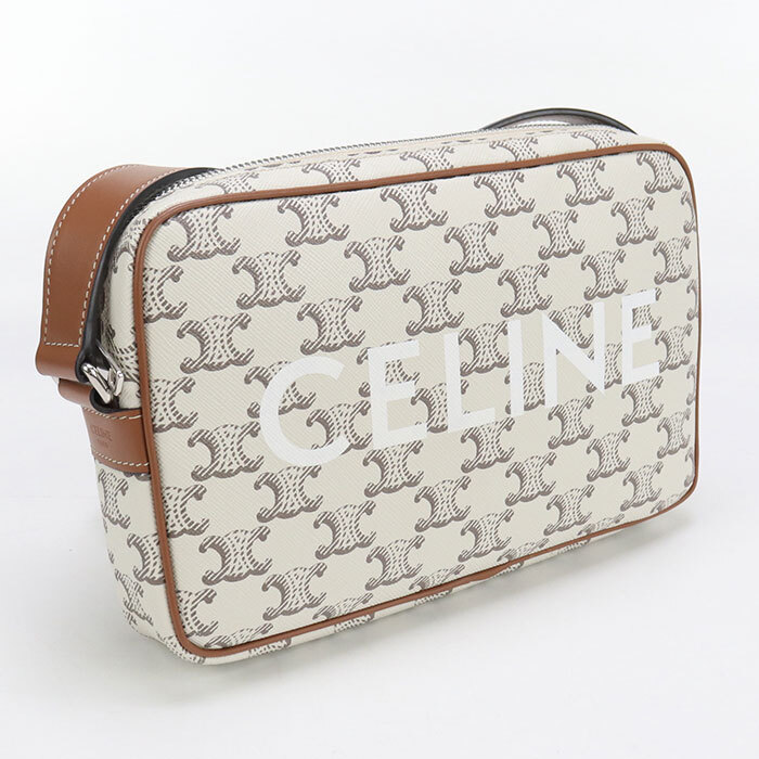 - 中古良品 CELINE セリーヌ 斜め掛け ショルダーバッグ トリオンフキャンバス レディース ホワイト