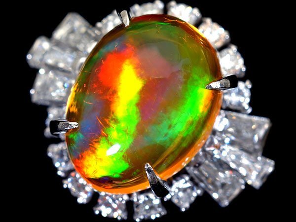 > 【ジュエリー極】極上虹色遊色湧く!大粒極上天然ファイアオパール3.91ct&極上ダイヤ0.99ct 高級Pt900リング h7844uklm【送料無料】