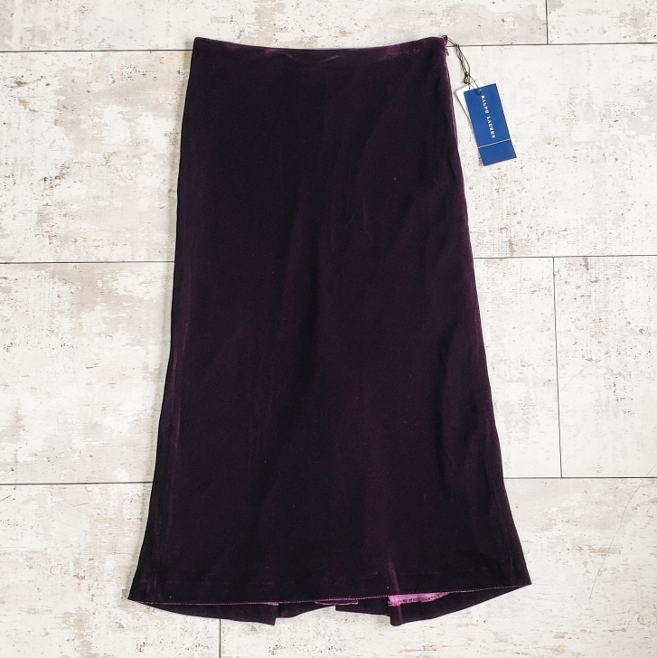 - 未使用 ラルフローレン ブラックレーベル ベロア シルク スカート 9 ボルドー系 ロング RALPH LAUREN BlackLabel