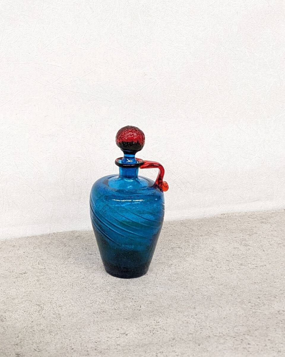 商品名・青い吹きガラスの小瓶 蓋付きボトル