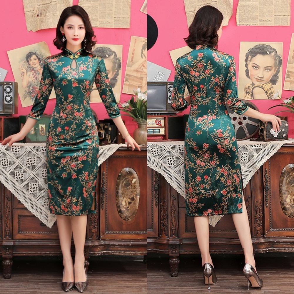 > ☆ 8834グリーン ☆ L ☆ チャイナドレス ミモレ丈 チャイナドレス ミモレ丈 レディース コスプレ チャイナ服 セクシー ドレス 衣装