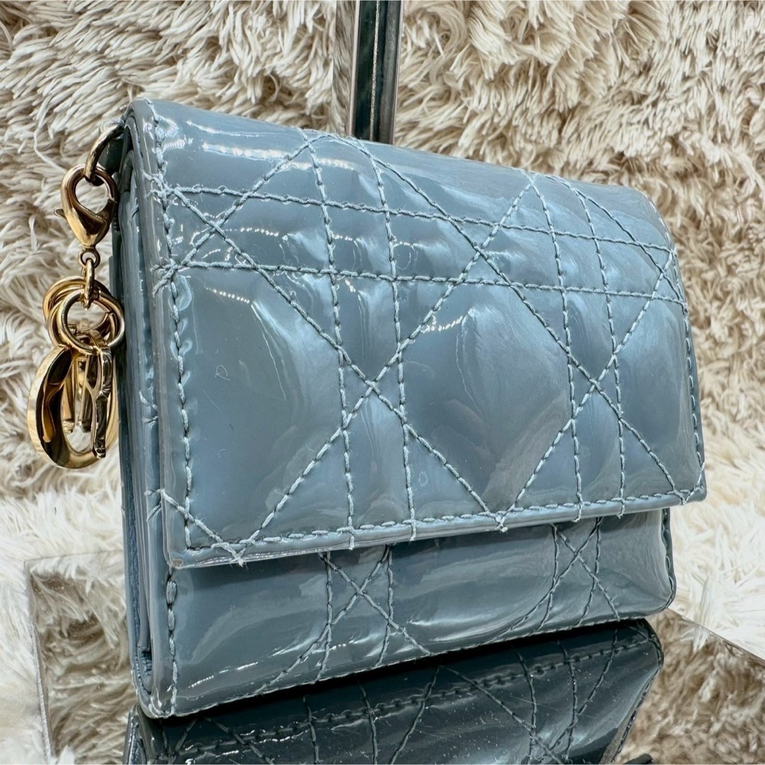 - 【美品】Christian Dior クリスチャンディオール 三つ折り財布 ブルー パテント カナージュ レディース エナメル コンパクトウォレット