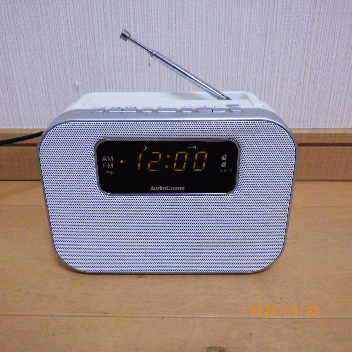 - AudioComm RAD-F3357M-W FM/AM デジタルクロックラジオ 動作品 送料600円 小型