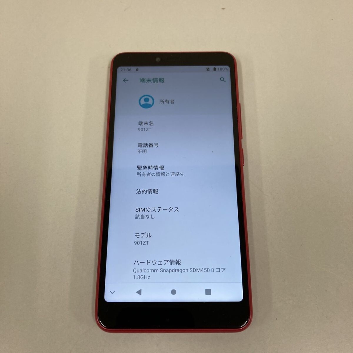 > D361-CH15-52 ◎ ZTE Libero S10 レッド 901ZT ROM32GB SIMフリー Android ver.9 IMEI ・通電動作確認確認○ TE