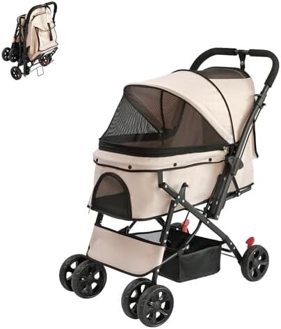 - 【送料無料】MOTASAN ペットカート 犬カート 対面両用 多頭 折りたたみ 収納 コンパクト 大開口 ストッパー 中型犬 小型