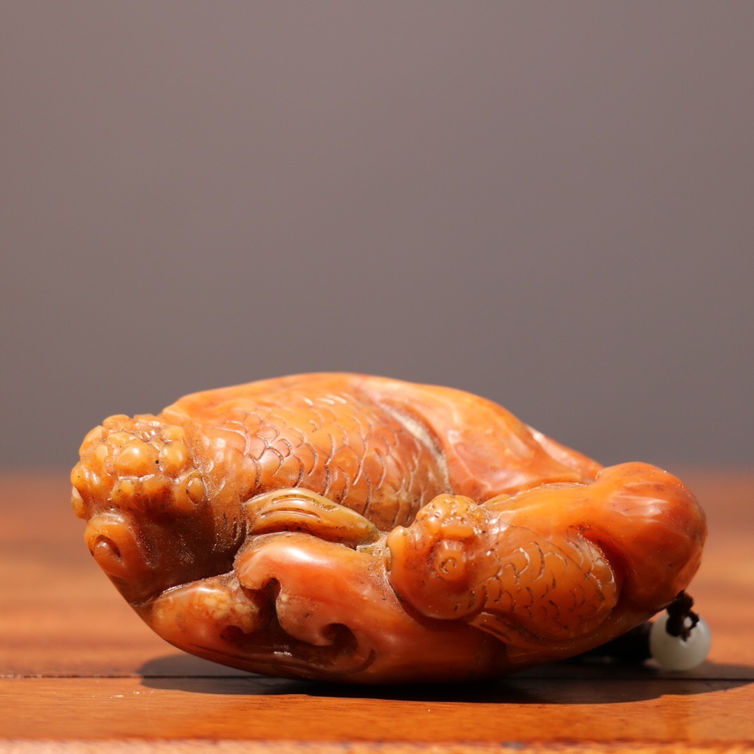 - 蔵友旧蔵出 寿山石 芙蓉石 細密彫 雙魚擺件 盒付 文房具 文案置物 書道品 稀少物品 置物 賞物 中国時代美術品