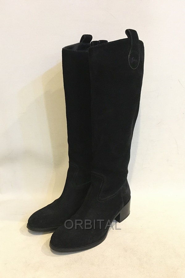 【商品名】:GUCCI グッチ 317031 スエードロングブーツ レザー ヒール ブラック 黒 レディース 34.5 22~22.5cm位