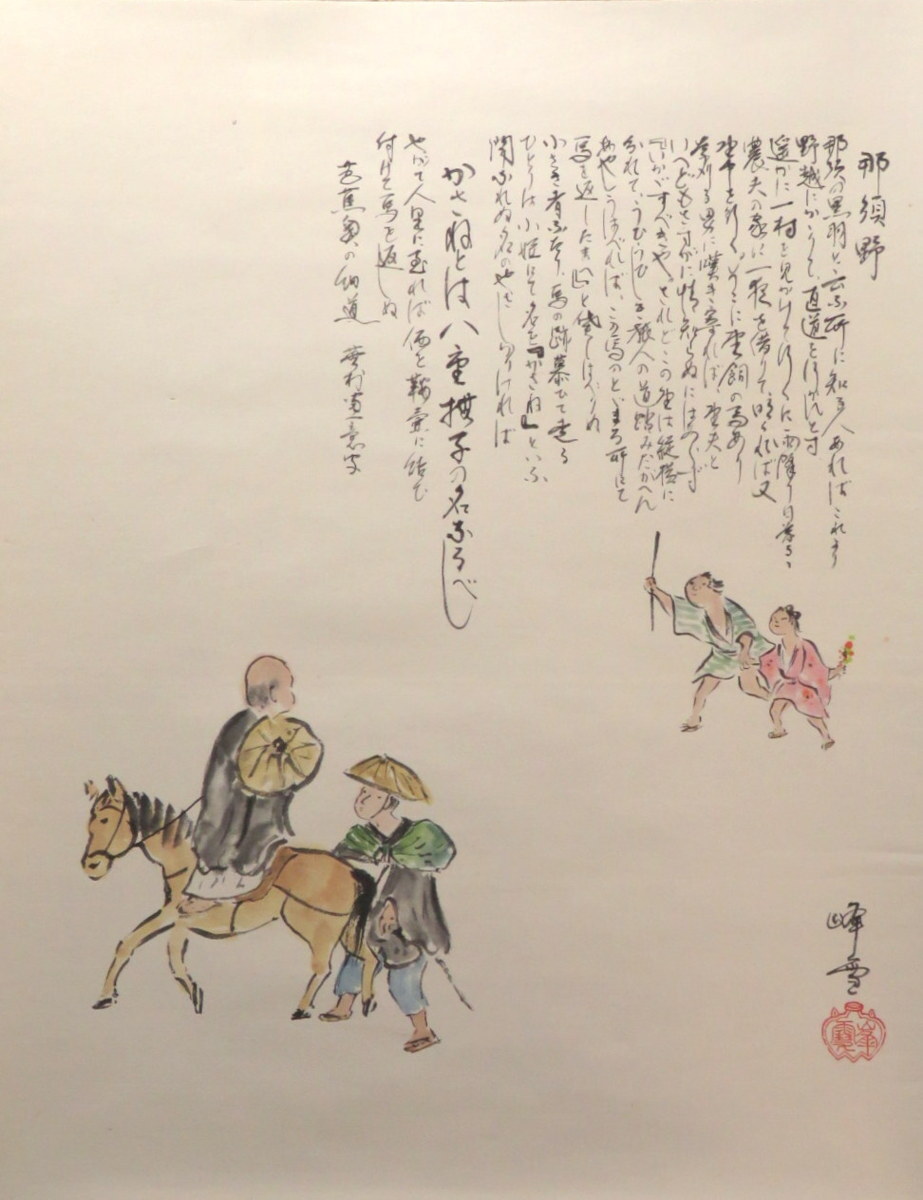 - JY1484◆◇掛軸 田中峰雪 奥の細道 那須野 尺五行灯 現代作家新作掛軸◇◆年中掛け 普段掛け 歴史画 風俗画 人物画 書 日本画