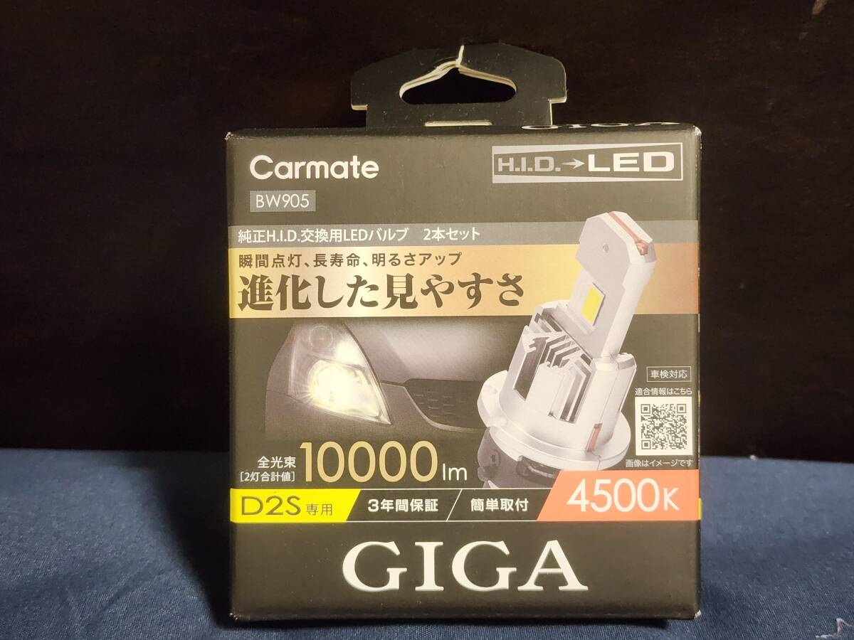 > カーメイト GIGA LEDヘッドバルブ コンバージョン D10 D2S 4500K〔BW905〕| 車検対応 ヘッドライト バルブ アイドリングストップ車対応