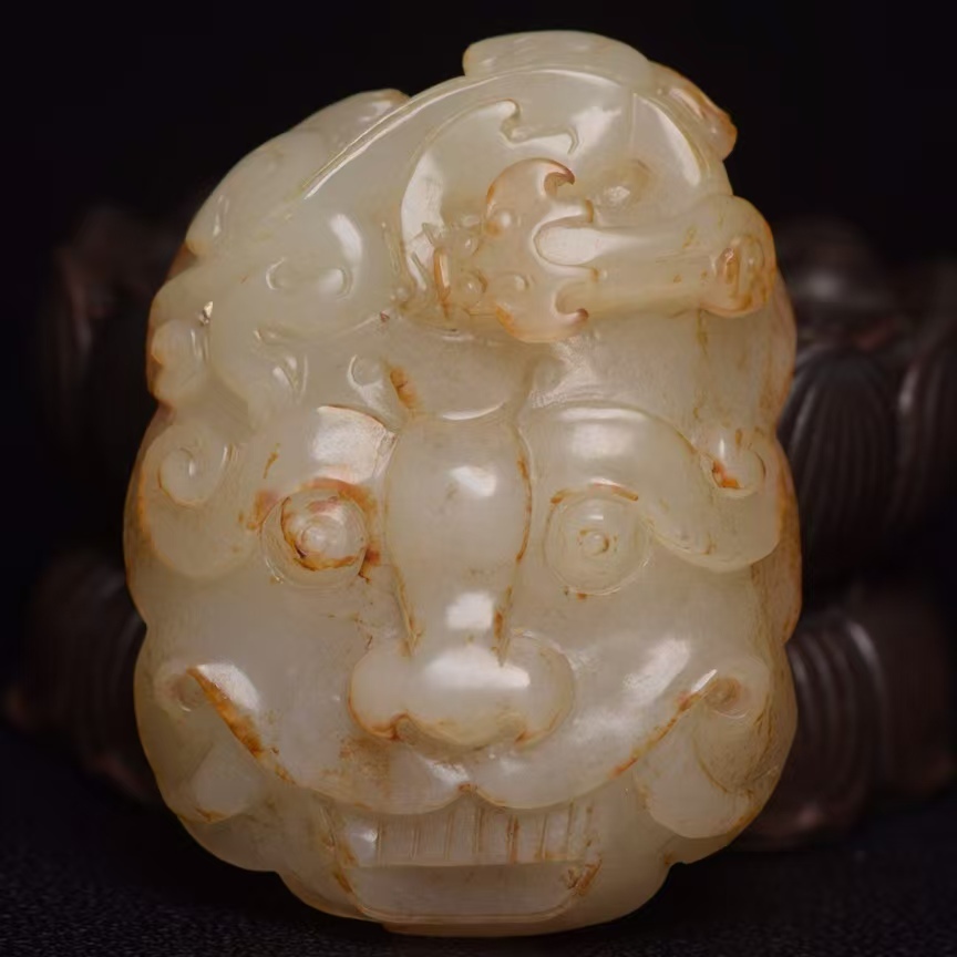 > 和田玉 秘藏 清代 古貔貅神獣バックル 古玉 白玉 唐物 古玉彫 天然石 稀少珍品 古美術 古賞物 古置物 旧蔵 9.22