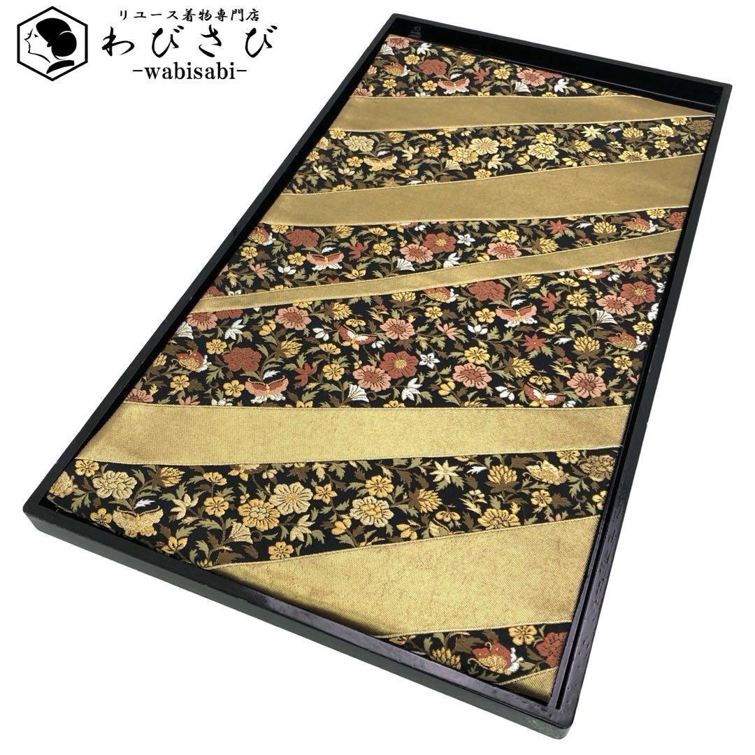 > 袋帯 小花秋趣文 斜め柄 花模様 金糸 黒色 フォーマル O-4395 着物 きもの kimono 和服 和装 中古 リサイクル着物 【送料無料】