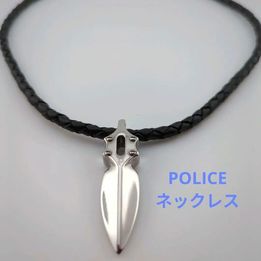 - POLICE ネックレス 矢じり型トップ 男女兼用 レザー×ステンレス 袋付き