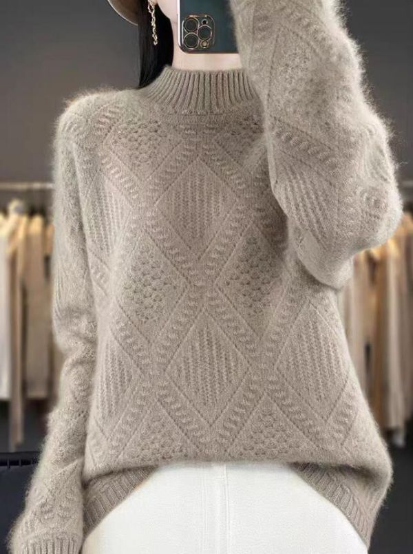 - 新入荷*高品質 柔らかい セーター 長袖 カシミヤ混 ニットトップス オフィス ビジネス 通勤 ストレッチ 暖かい ニットセーター*キャメル