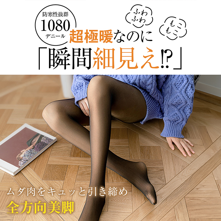 - SNSで話題 裏起毛タイツ 2枚セット 透け感 美脚 極暖 つま先まで 裏起毛 あったかタイツ サイズ:S
