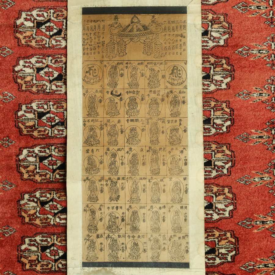 - 【真作】 掛軸 三十三所 仏画 木版 霊場 梵字 時代 木版 蚕神 検) 和本古文書護符掛軸 仏教密教神道修験道 仏教美術 民間信仰 仏像