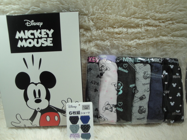 - S新品140-711 ディズニー ジュニアショーツ 黒系2枚+グレー系2枚+薄ピンク系1枚+濃ブルー系1枚 すべて総柄 6枚組