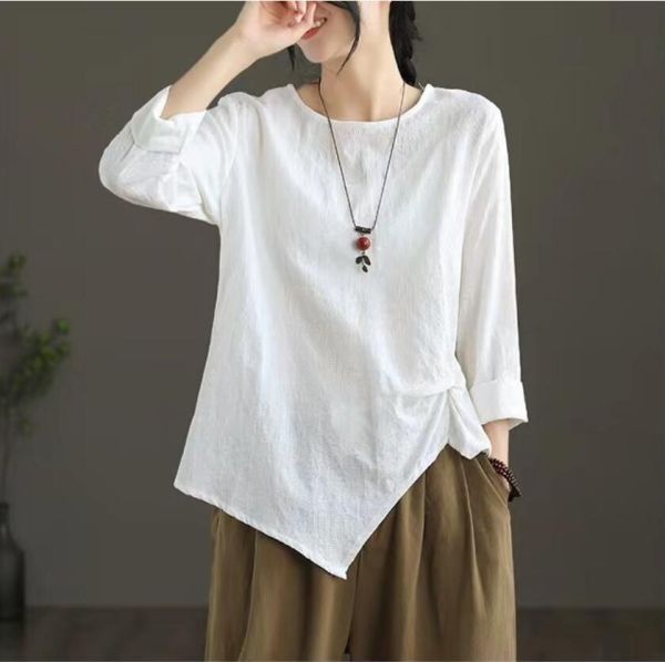 - 新入荷 * 新品 ブラウス 大人気 カジュアル ナチュラル 無地 チュニック 綿麻 不規則 ゆったり 大きいサイズ 長袖 シャツブラウス * 白