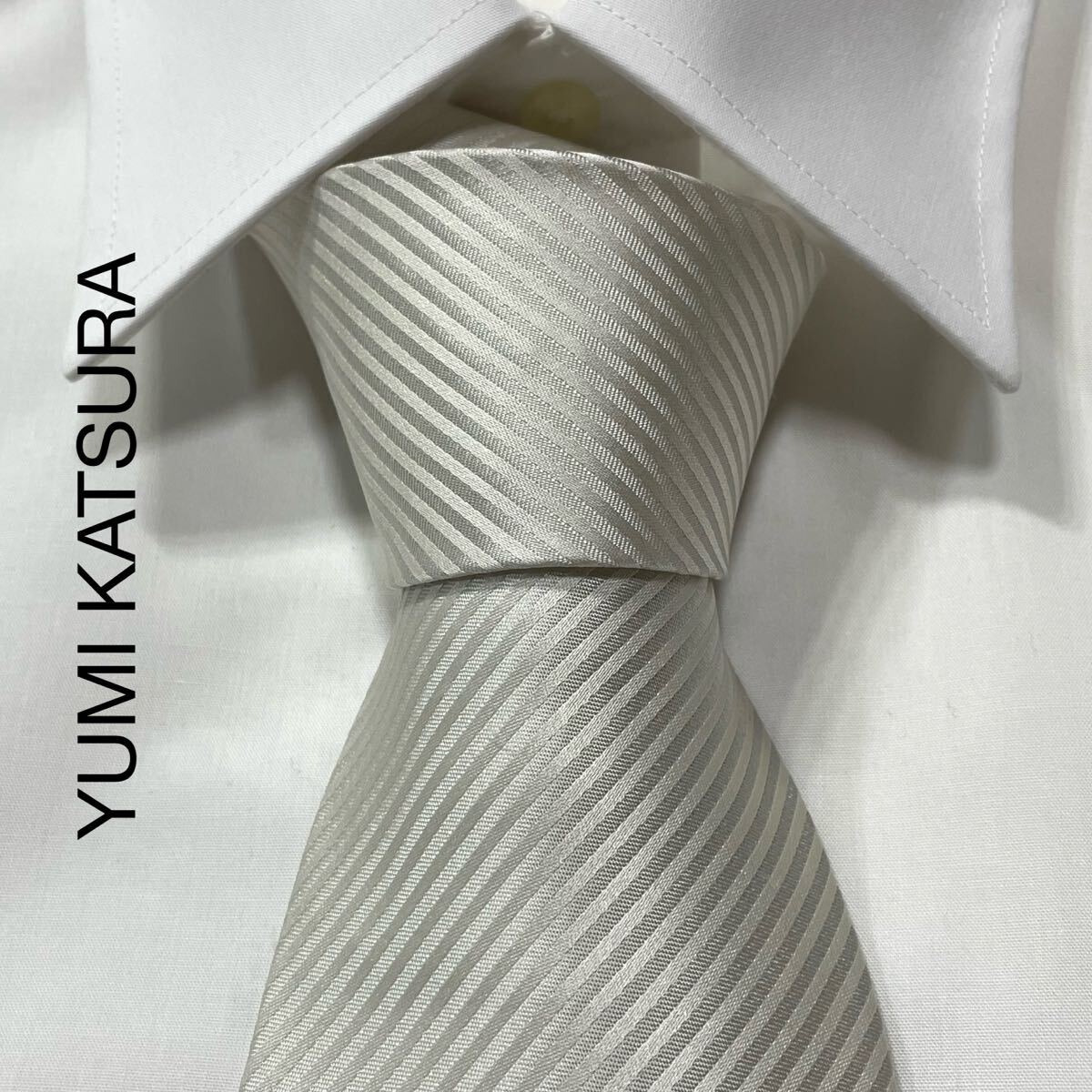 - YUMI KATSURA ユミカツラ レジメンタル ストライプ ジャガード シルク ネクタイ 日本製 ホワイト ライトグレー TG2889