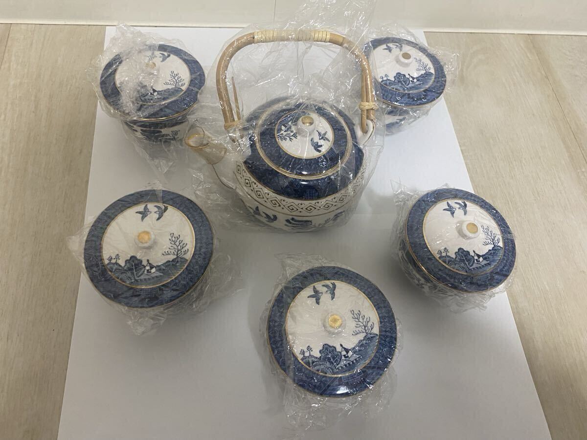 - NIKKO ニッコー TABLEWARE 山水 急須&蓋付湯呑 茶器5客セット 未使用 保管品