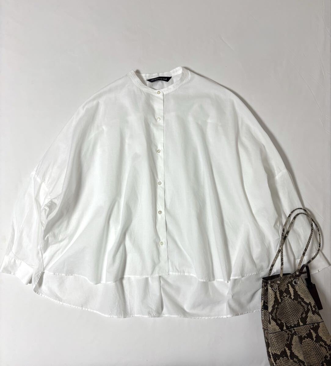 - ミズイロインド mizuiro ind バックギャザー ワイドシャツ