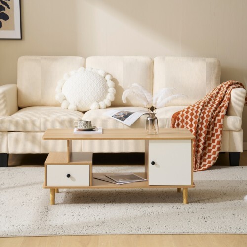 - センターテーブル ローテーブル テレビ台 引出し付き ラック付き 収納付き 3色 大容量 多機能 リビングテーブル おしゃれ 【ナチュラル】