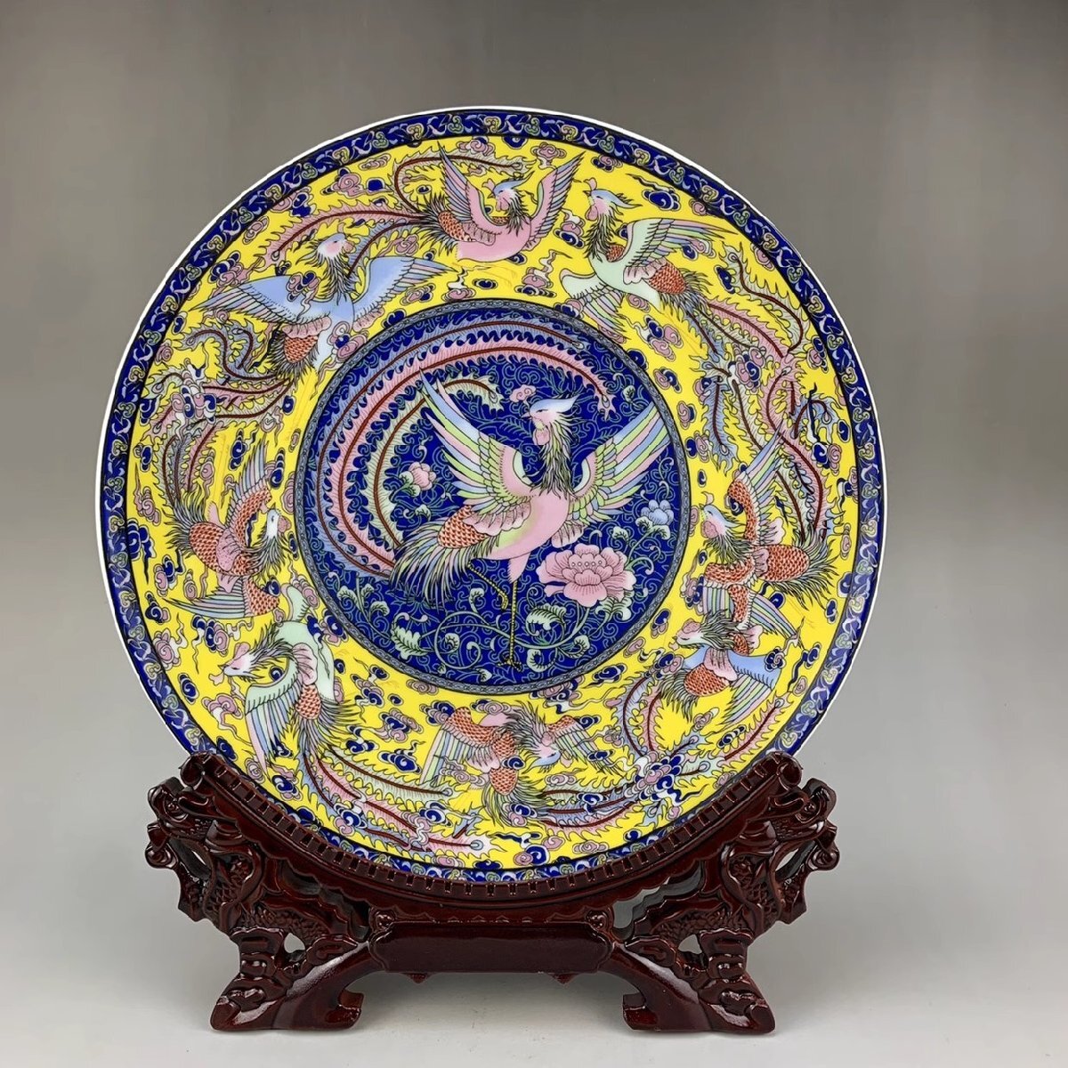 > 景徳鎮 お皿 観賞皿 磁器 九鳳図 粉彩 陶磁器 観賞 置物 中国美術品 工芸品 収蔵 zh99