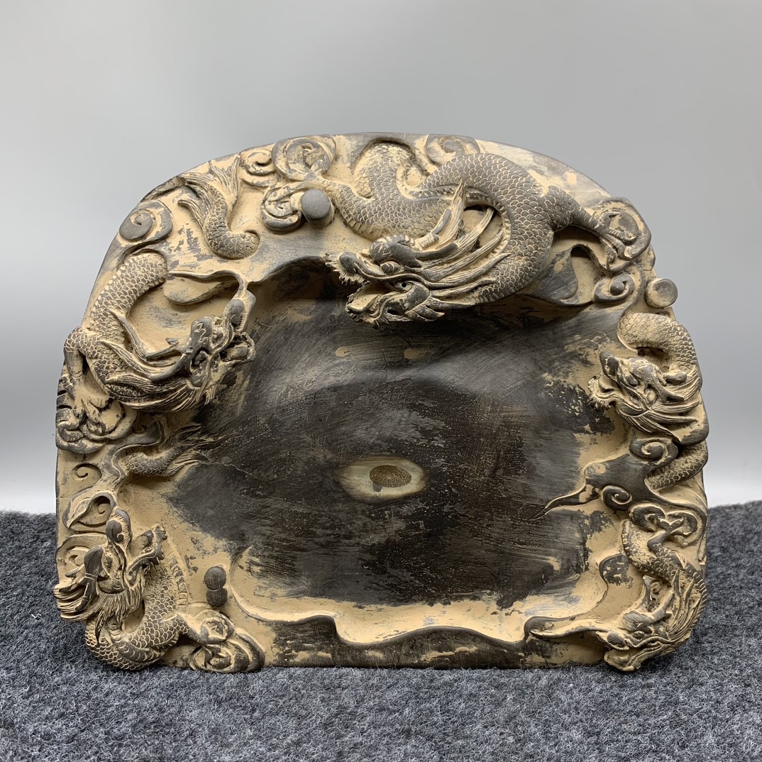 > 珍藏品 古硯台 五龍戯珠 詩文 硯台 宝硯 文房具 文房用品 文房四宝之一 時代物 古董品 骨董 旧家蔵出 唐物 中国古玩 華夏品 古美術品