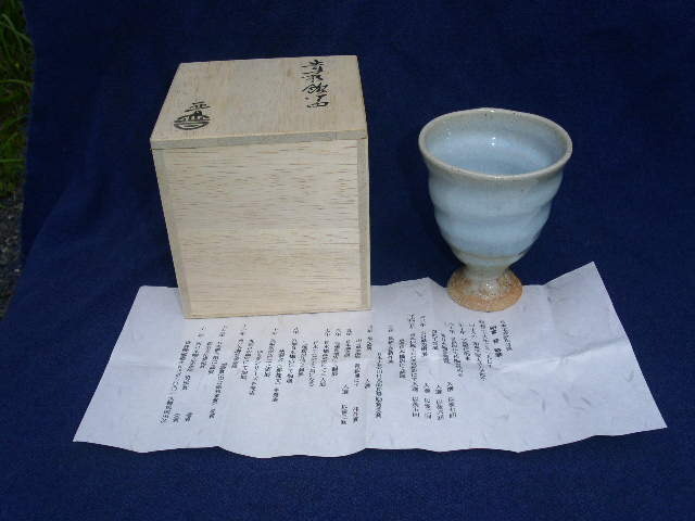 > ★レトロ★ 未使用 萩焼 名工 納富 晋 青萩シリーズ 青彩飲器 共箱 略歴書(ビンテージ・アンティーク・インテリア)