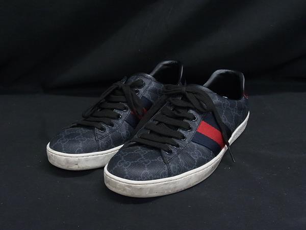 - 1円 ■美品■ GUCCI グッチ 429445 エース GGスプリーム PVC スニーカー サイズ 7 1/2 (約26.5cm) 靴 シューズ メンズ ネイビー系 FU1767