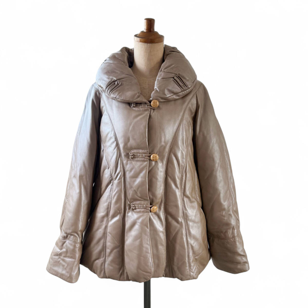 > N7-1364 美品 BALMAIN バルマン 羊革 レザー ダウン コート 茶 シープレザー レディース