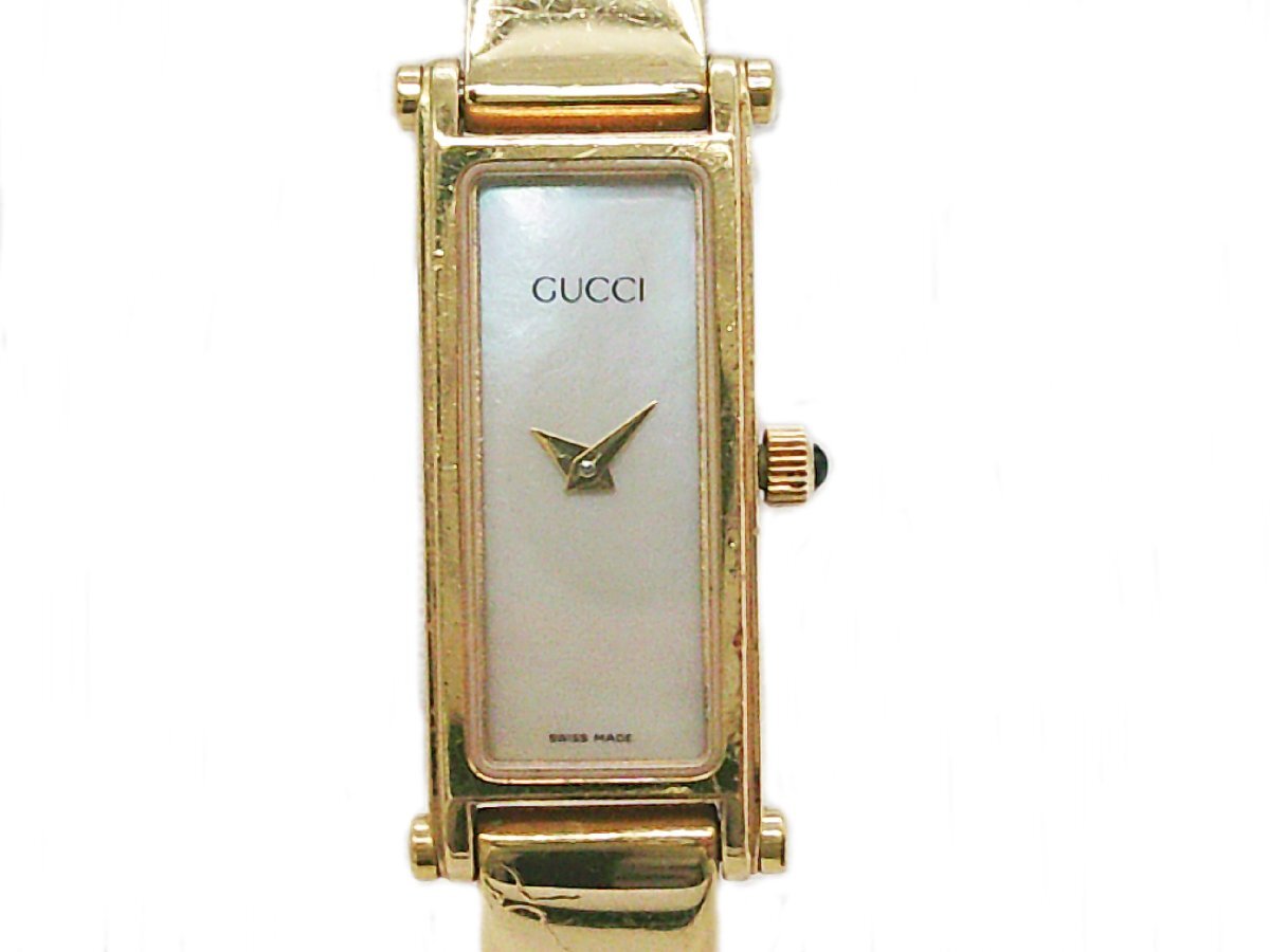 > ★GUCCI グッチ 1500 腕時計 レディース バングルウォッチ ホワイトシェル文字盤 クォーツ GP スクエア★/H