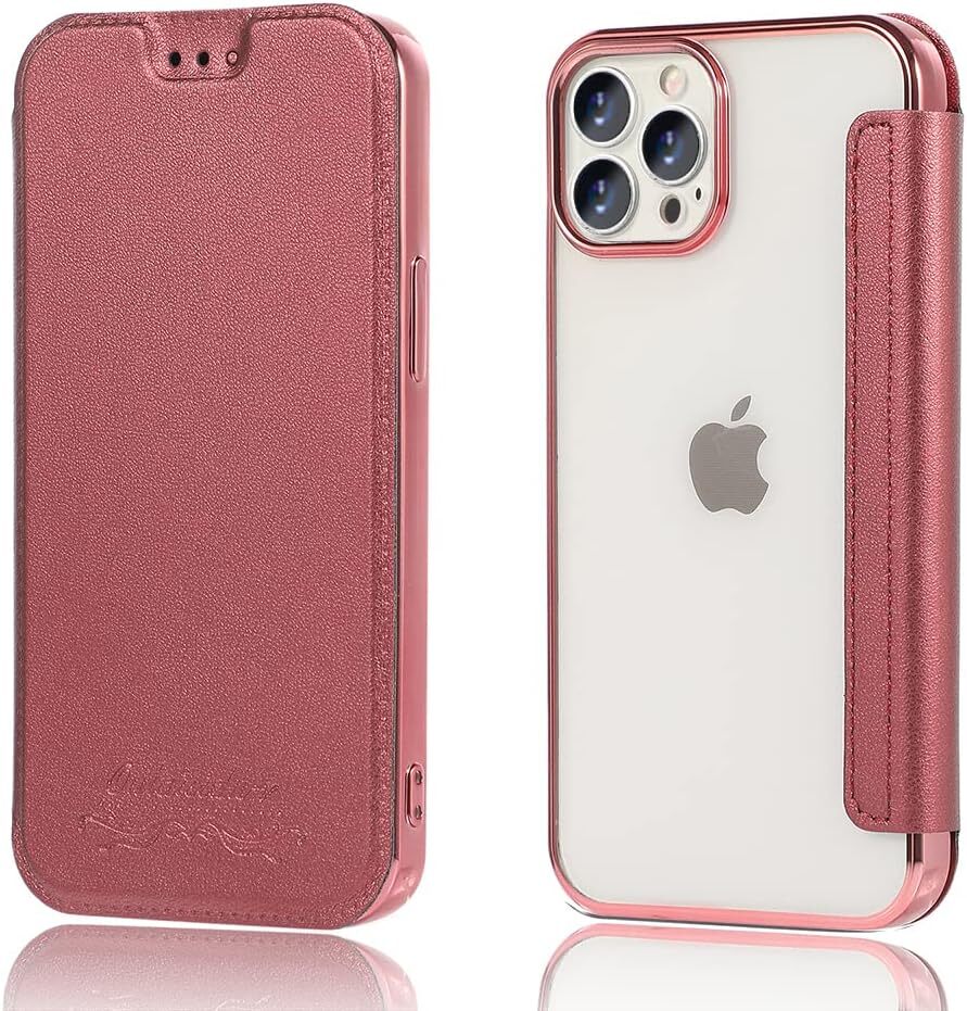 - MuZiF iPhone12 用 ケース 手帳型 クリア 高級なPUレザー 耐衝撃性と耐摩耗性12 用 全面保護耐衝撃 カード収納 (ワインレッド)